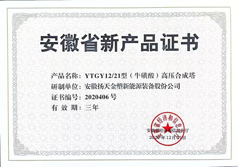 2020年12月31日,我公司順利通過了前期一系列的安徴省新產(chǎn)品企業(yè)認定審查工作,榮獲了由安徽經(jīng)濟和信息廳省頒發(fā)的《安徽省新產(chǎn)品證書》。