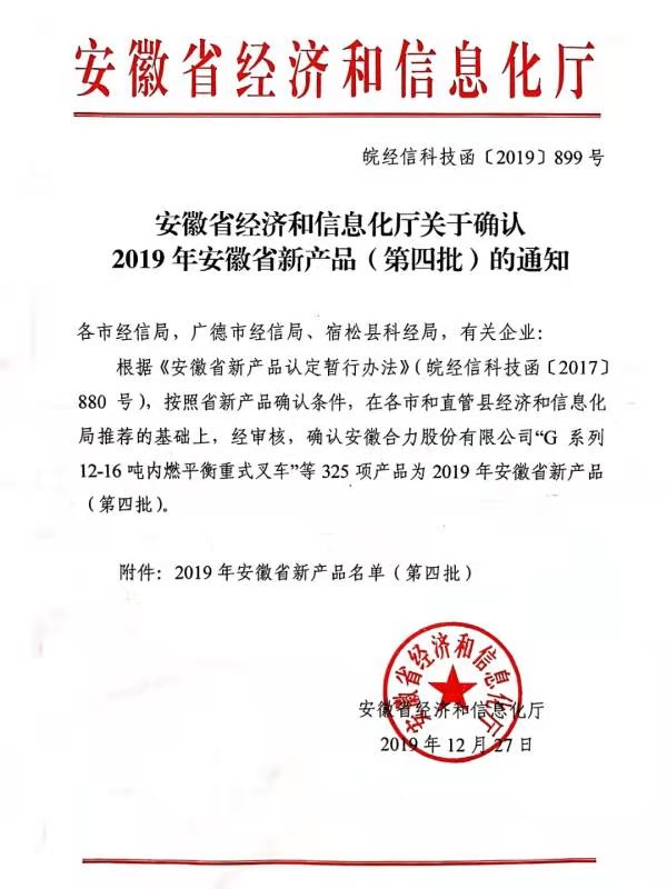 近日,安徽省經濟和信息化廳公布了“2019年度安徽省新產品(第四批)擬定名單公示”。本次全省共計325項產品入選,我公司產品名列其中。